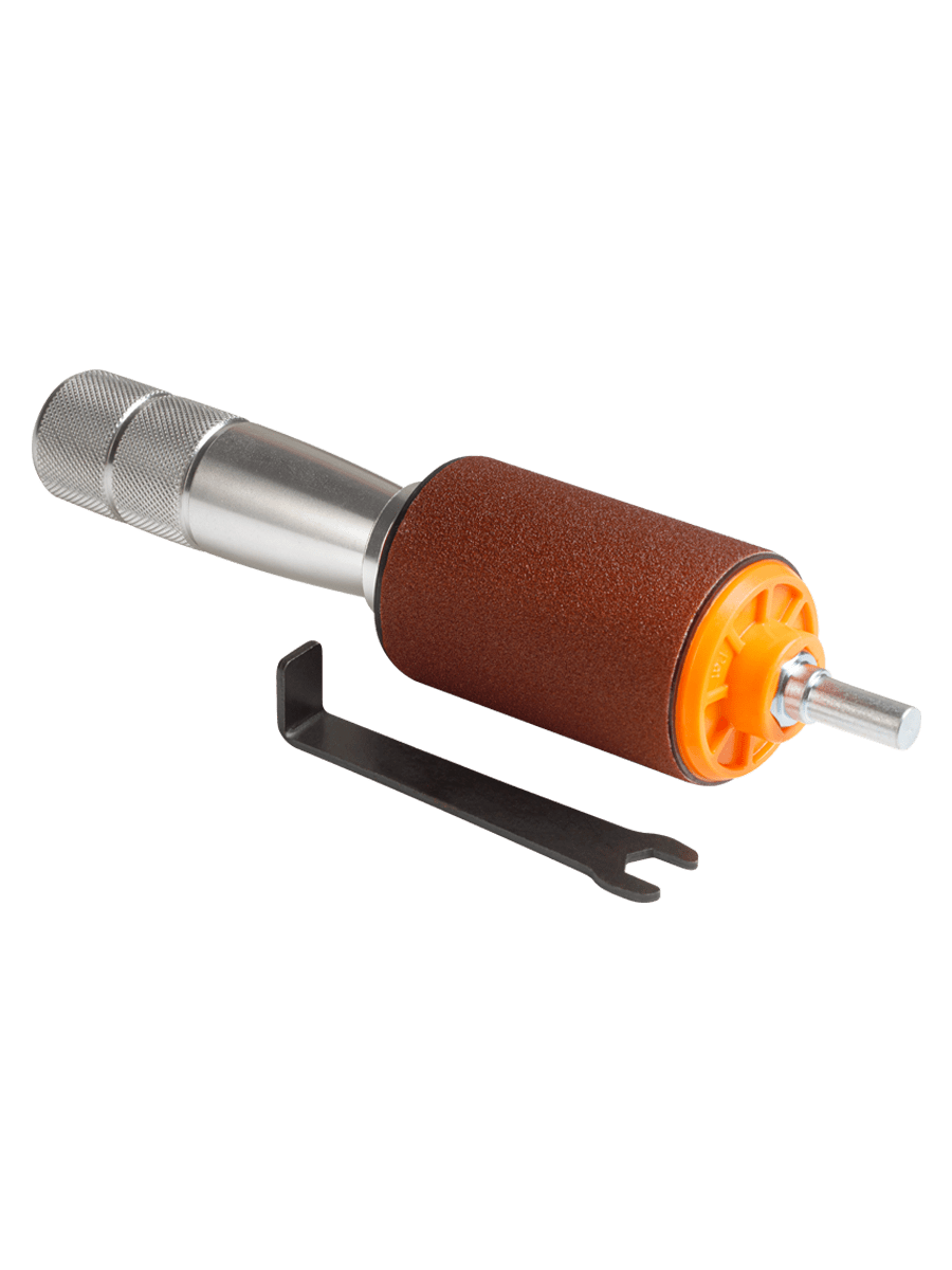 Ручной шлифовальный барабан отличается от стационарных удобством применения и портативностью. Усовершенствованная конструкция шлифовального барабана упрощает его сборку и установку. Барабан выполнен из АВС пластика, инкапсулированного термоэластопластом, что повышает качество изготовления и долговечность. Заменять наждачную бумагу легко и просто. Нет необходимости менять сам барабан, достаточно заменить расходуемую наждачную бумагу, при этом плоский лист бумаги обертывается вокруг барабана и оба конца бумаги закрепляются в барабане специальным зажимом.