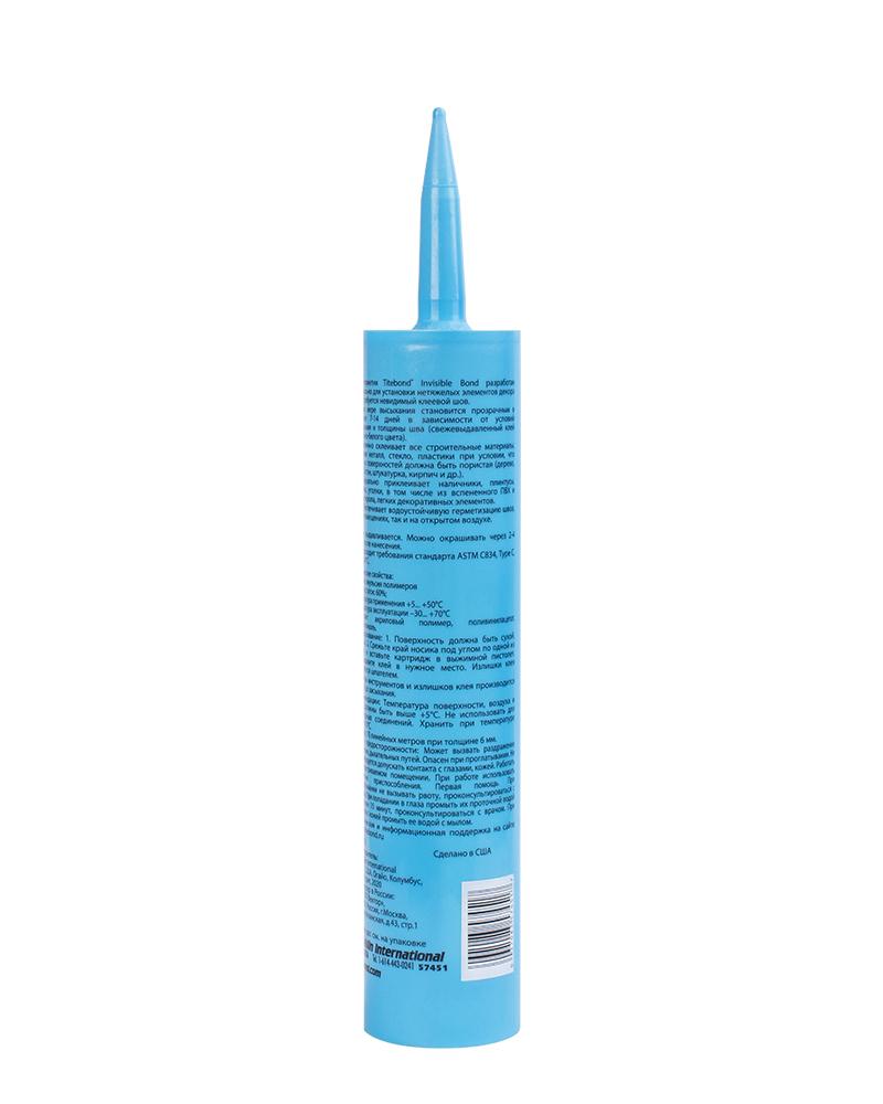 Клей-герметик Titebond Invisible Bond — это универсальный продукт на основе силиконизированного акрила, предназначенный как для внутренних, так и для наружных работ. Эта простая в использовании формула быстро высыхает, не оставляя блеска, и легко смывается водой. Клей-герметик обладает отличной атмосферостойкостью, водостойкостью после отверждения, легко обрабатывается инструментами и может быть окрашен уже через два часа. Не содержит пластификаторов и фталатов, он демонстрирует непревзойденную адгезию к большинству распространенных строительных материалов, включая дерево, металл, стекло, плитку и многие другие.