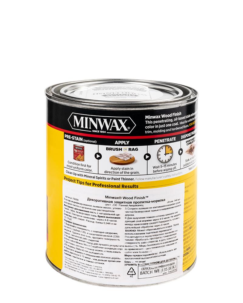 Minwax®Wood Finish – декоративная защитная пропитка-морилка для дерева на основе масла. Насыщает натуральный цвет дерева, придает нужный цветовой оттенок и индивидуальность каждому предмету, надолго сохраняя его естественную красоту. Minwax® Wood Finish™ глубоко проникает в поры древесины, заполняя их, препятствуя проникновению воды и ультрафиолета, тем самым защищая дерево от старения.