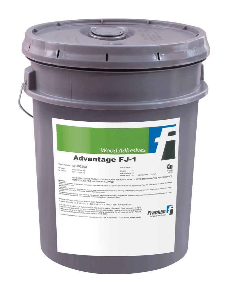 ADVANTAGE FJ-1 – первый однокомпонентный готовый к использованию клей на основе поливинилацетатной эмульсии с поперечными связями, превосходящий требования стандарта ASTM D-5572-95 (2012) Wet Use для соединений в микрошип деревянных изделий, не несущих нагрузки. Этот качественный клей имеет низкую температуру применения, повышенную текучесть, что делает его незаменимым для соединений в микрошип.