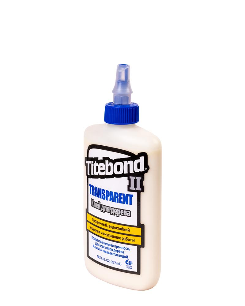 Titebond II Transparent Wood Glue предназначен для использования в домашнем хозяйстве и деревообработке. Он обеспечивает практически невидимую линию склеивания, которая становится прочнее чем древесина. Надежная фиксация и высокая скорость схватывания помогают сократить время прессования. После высыхания этот клей для дерева не подвержен воздействию финишной отделки и легко шлифуется. Titebond II Transparent также идеально подходит для поделок, он прост в использовании, нетоксичен и легко моется водой. Он специально разработан для обработки дерева, древесностружечных плит, оргалита, кожи, ткани и большинства других пористых материалов.