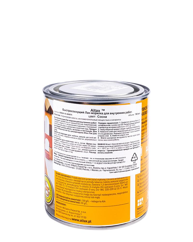Altax быстросохнущая лакоморилка для внутренней отделки Сосна 750 мл