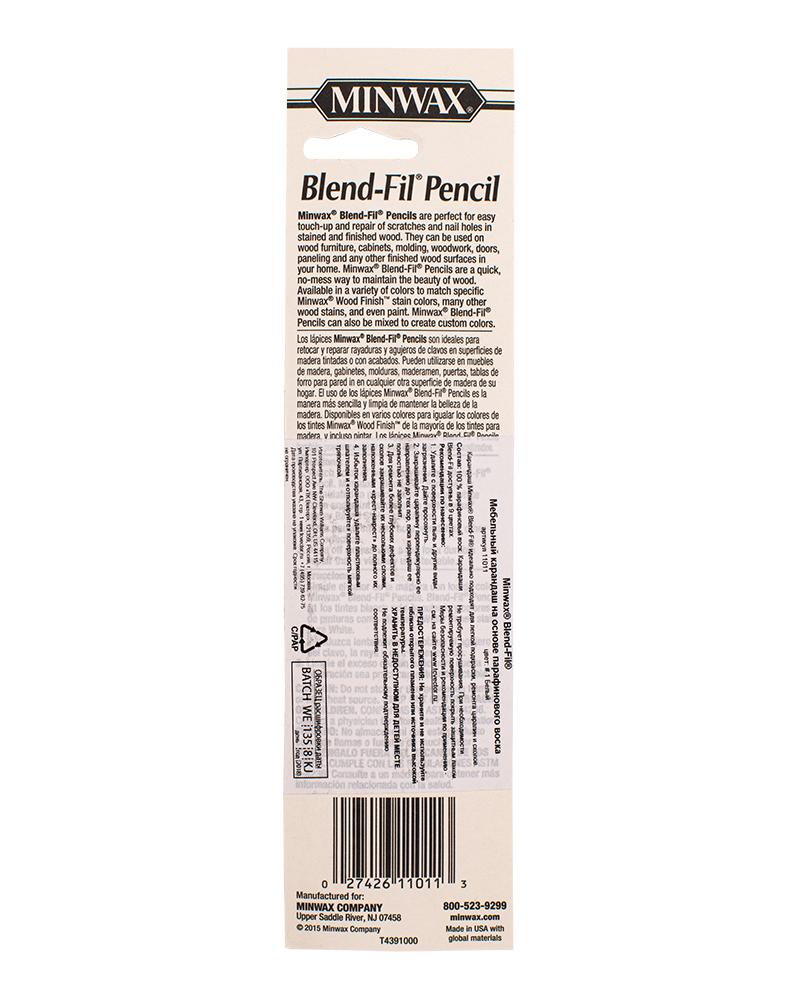 • Выбирайте цвет карандаша в соответствии с оттенком тонированной древесины. Карандаши Minwax Blend-Fil созданы так, чтобы идеально сочетаться с цветами морилок Minwax Wood Finish и Men at Work Wood Finish.